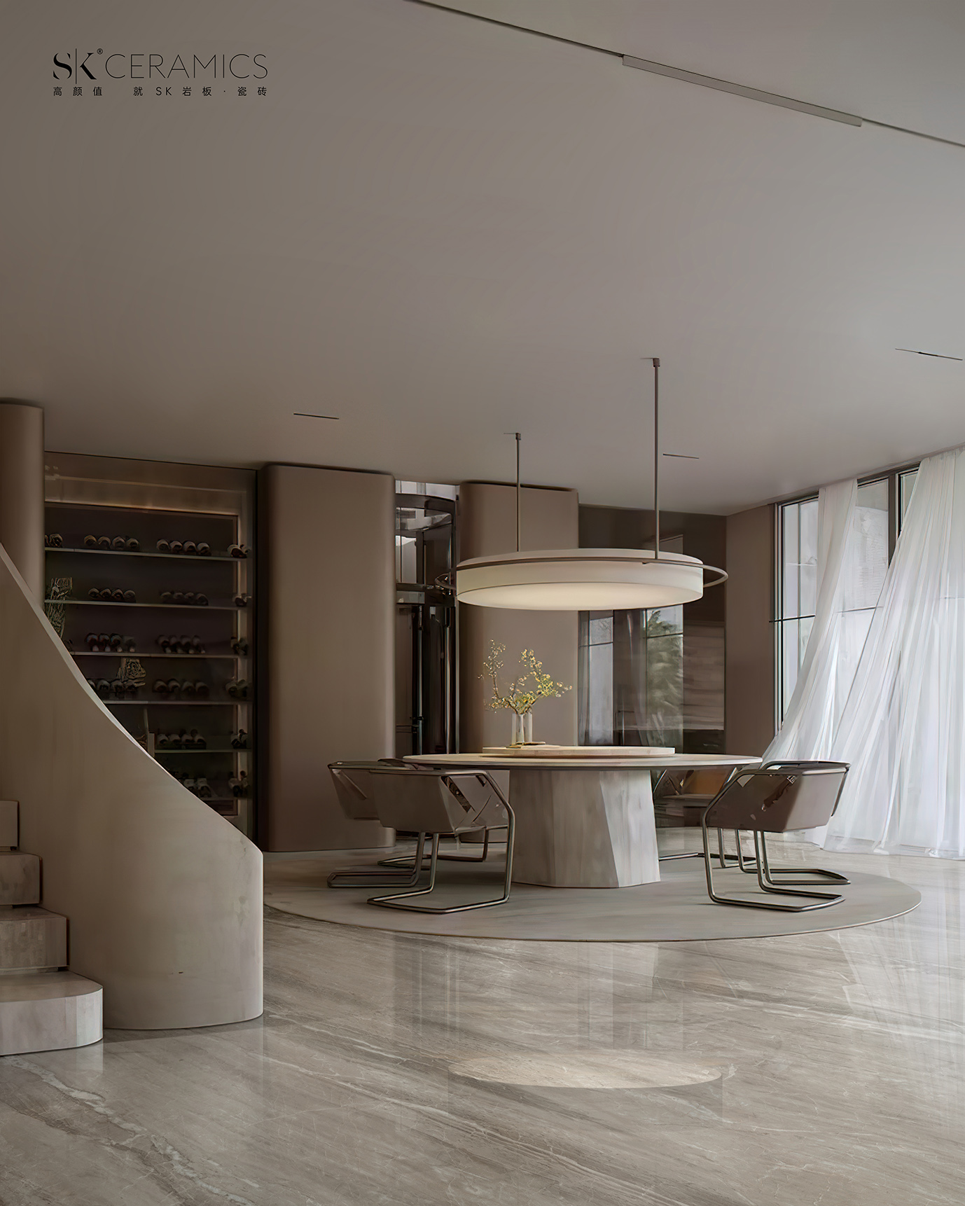 色彩:暖灰基底+奇石紋理