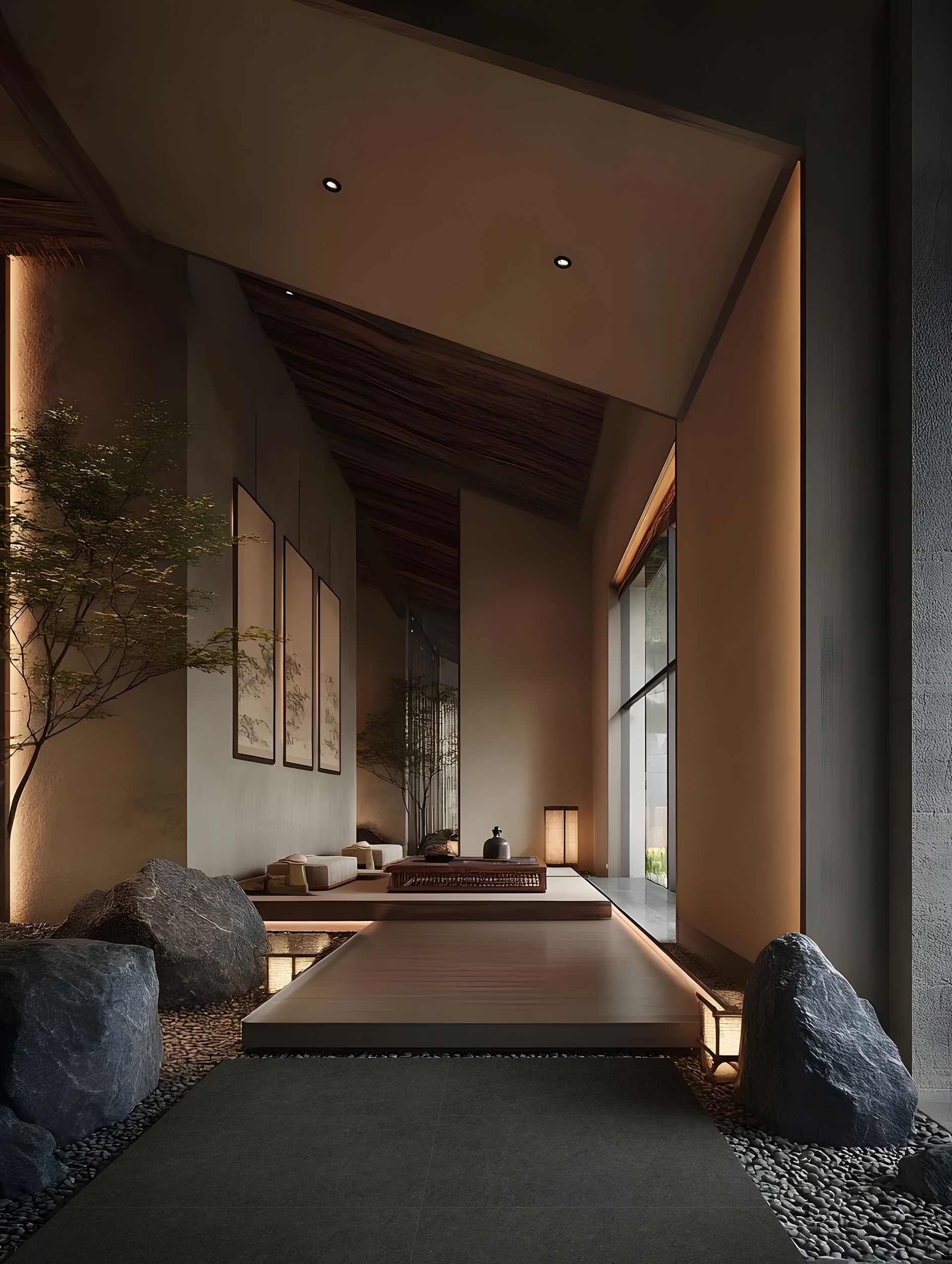 灰黑基底如潑墨蒼穹,淬煉出冷峻質感,賦予空間暗夜星辰般的深邃張力。